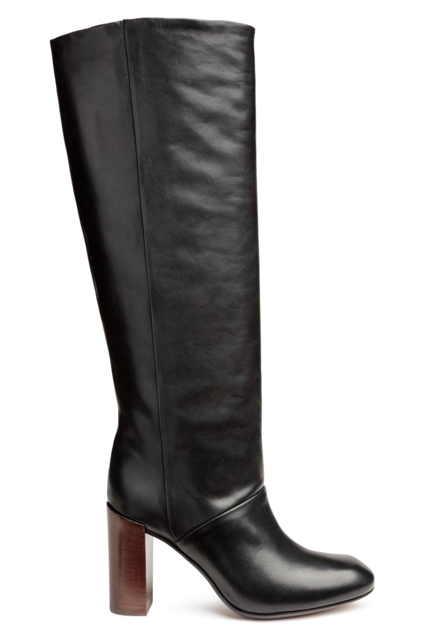 Polvipituisissa nahkasaappaissa on puinen korko ja ajaton malli. 199 e, H&M.