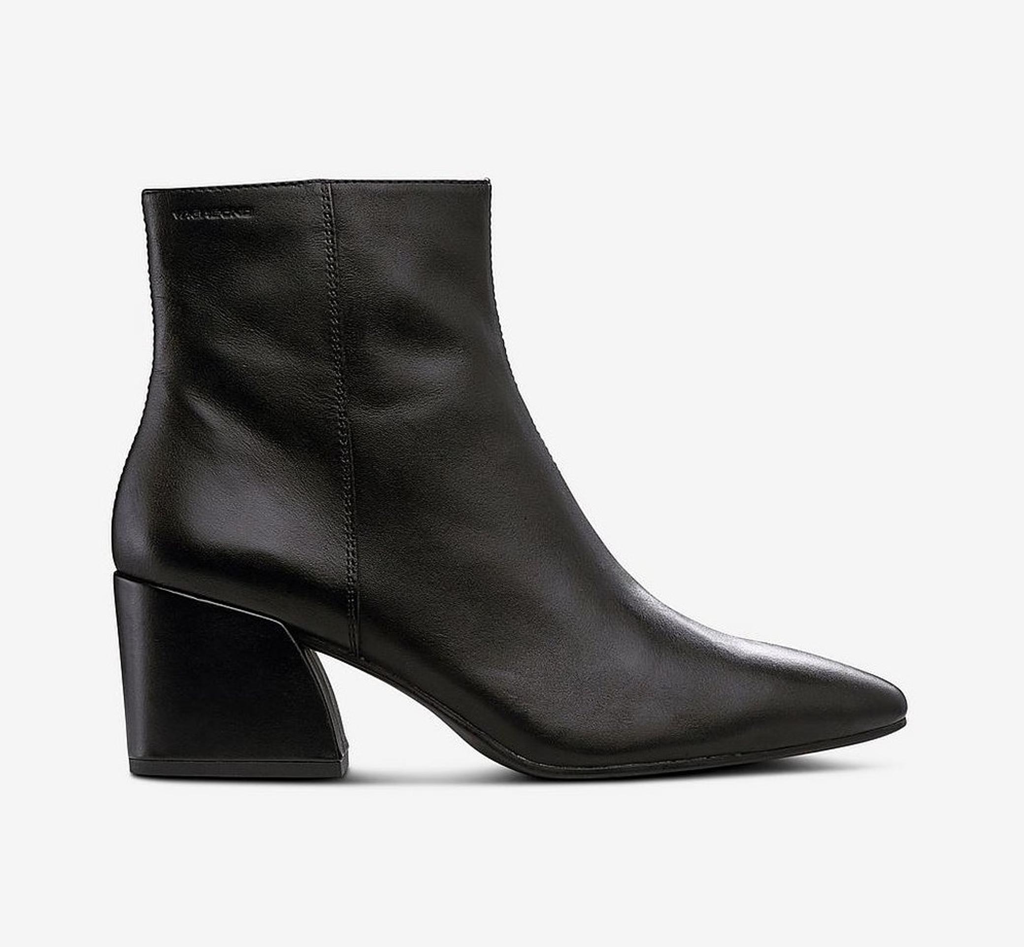 Mustissa nahkanilkkureissa on retrohenkeä ja buutsimaisuutta. Ne sopivat monenlaiseen tyyliin. Olivia-nilkkurit 130 e, Vagabond.