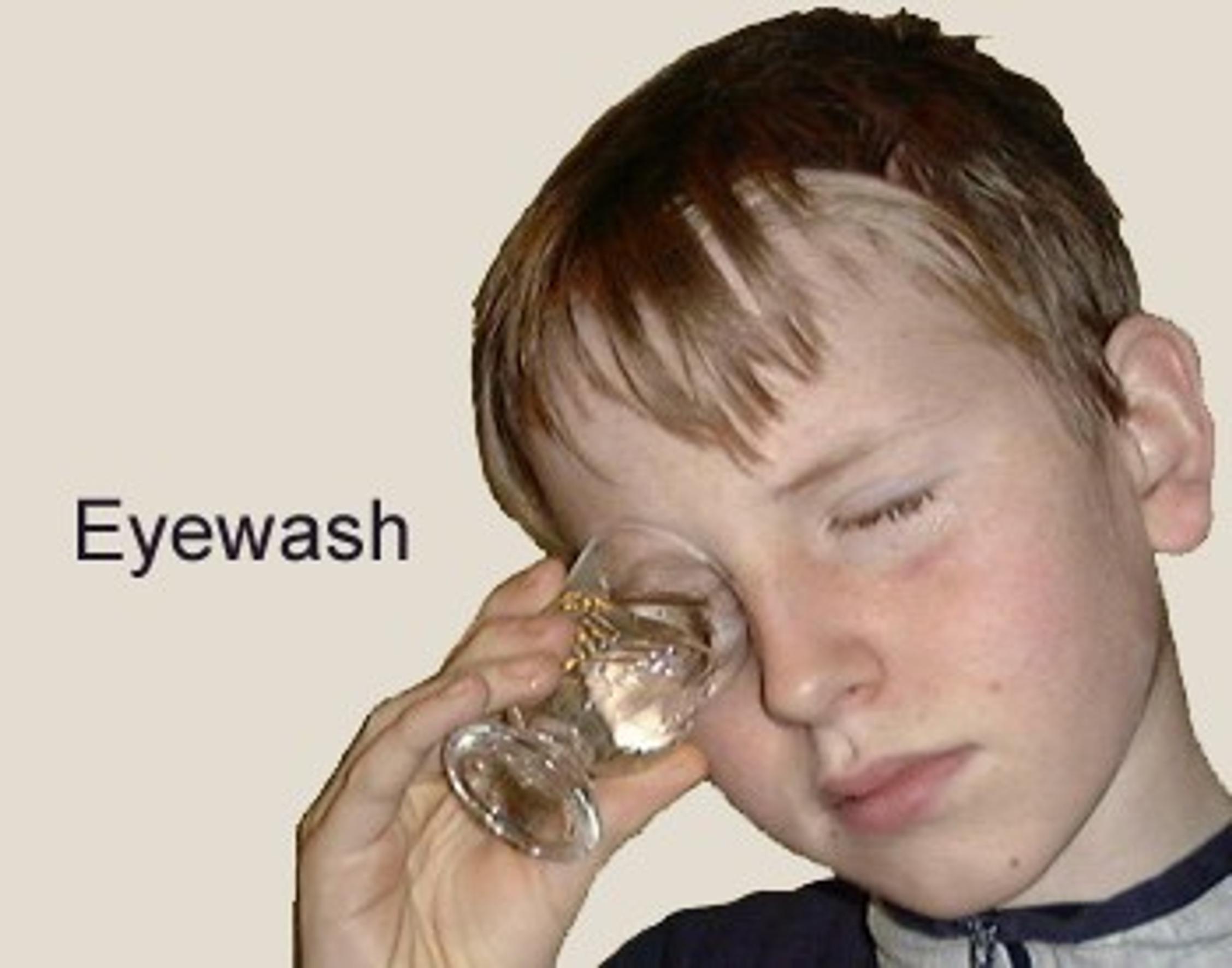 Jos lapsesi saa syövyttävää ainetta silmäänsä, aloita välittömästi silmän huuhteleminen haalealla vedellä 15-30 minuutin ajan. Vesi laimentaa syövyttävän nesteen ja rajoittaa siten vauriota; sillä on myös kipua lievittävä vaikutus. Jos ainetta on joutunut molempiin silmiin, voit huuhtoa niitä suihkulla.