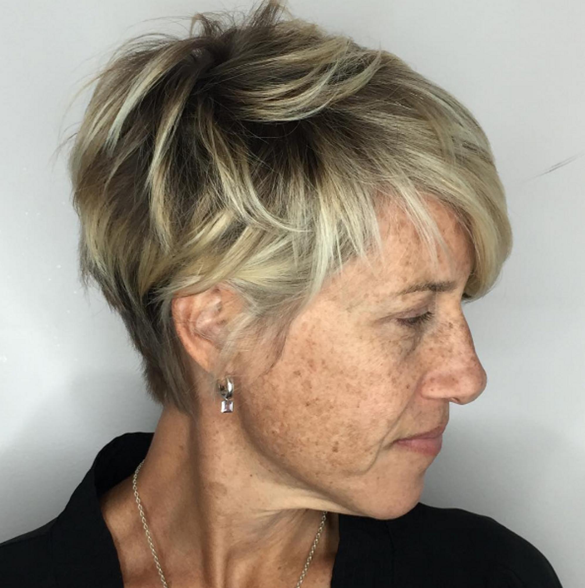 Reilusti harmaantuneissa hiuksissa kannattaa kokeilla tummanruskeiden ja vaaleiden raitojen yhdistelmää, jotka ryhdistävät ilmettä kummasti.