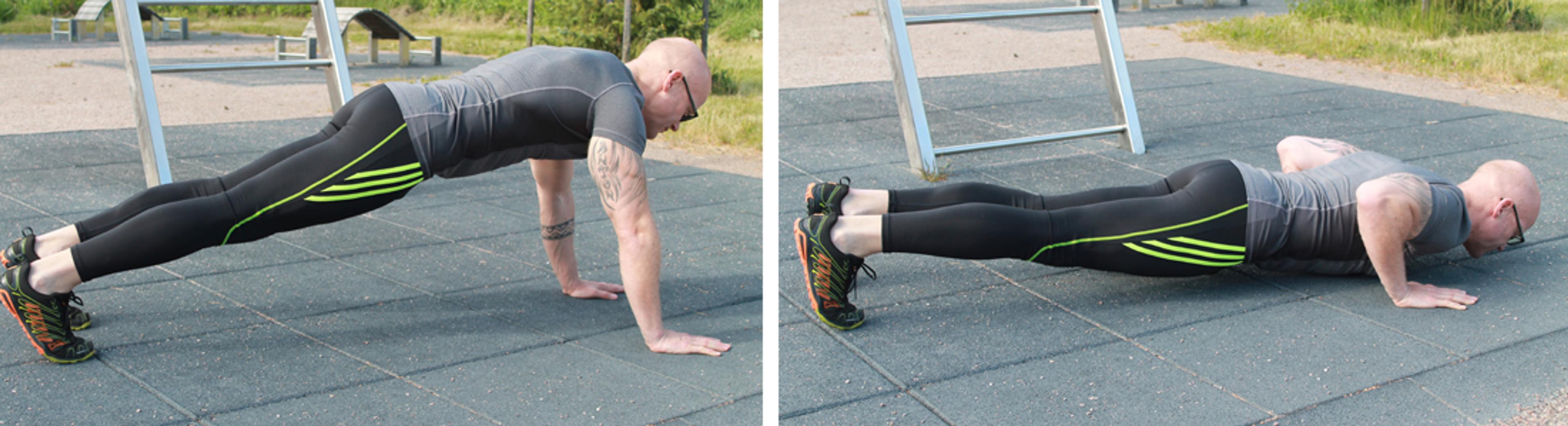 Punnerrus on helpompi tehdä polvet maassa. Älä roikota päätä alhaalla, vaan pidä pää selän jatkeena.