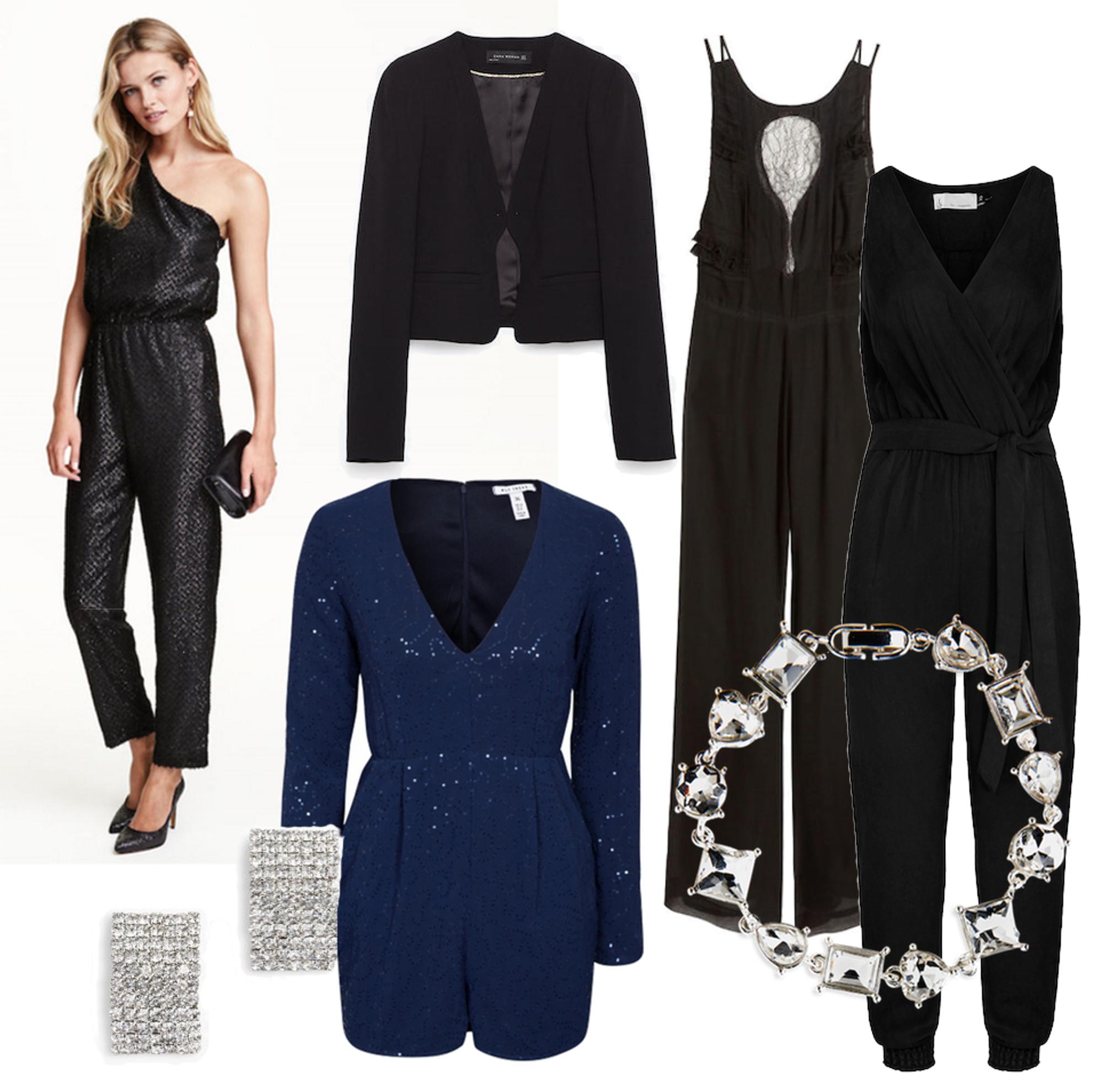 Tunnelmakuvan yksiolkaiminen haalari 49,99 e, H&M. Korvakorut 11,90 e, Glitter. Bleiseri 69,95 e, Zara. Sortsihaalari 44,95 e, Nelly.com. Sifonkihaalari 49,99 e, H&M. Rannekoru 7,95 e, Lindex. Trikoohaalari 54,95 e, KappAhl.