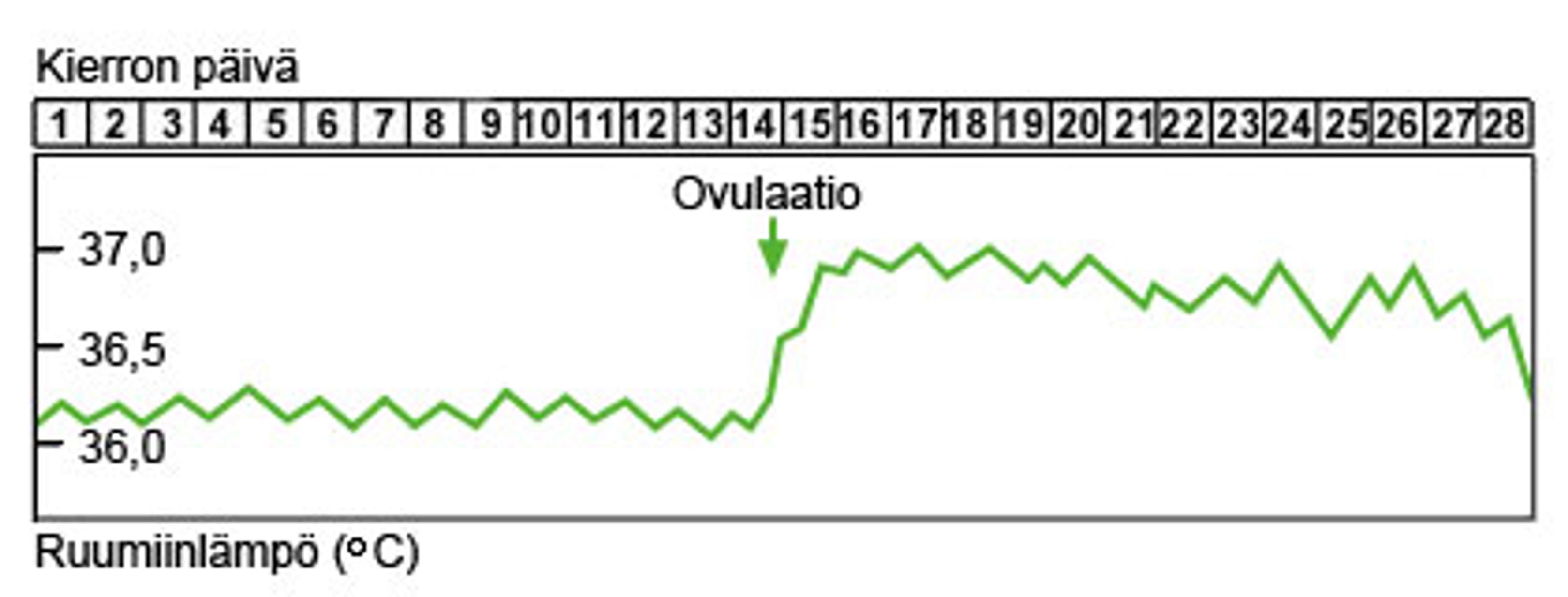 Normaalin kuukautiskierron aikana naisen ruumiinlämpö kohoaa puolisen astetta ennen ovulaatiota ja pysyy sillä tasolla kuukautisiin saakka.