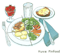 Lautasmalli havainnollistaa hyvää ateriakokonaisuutta: