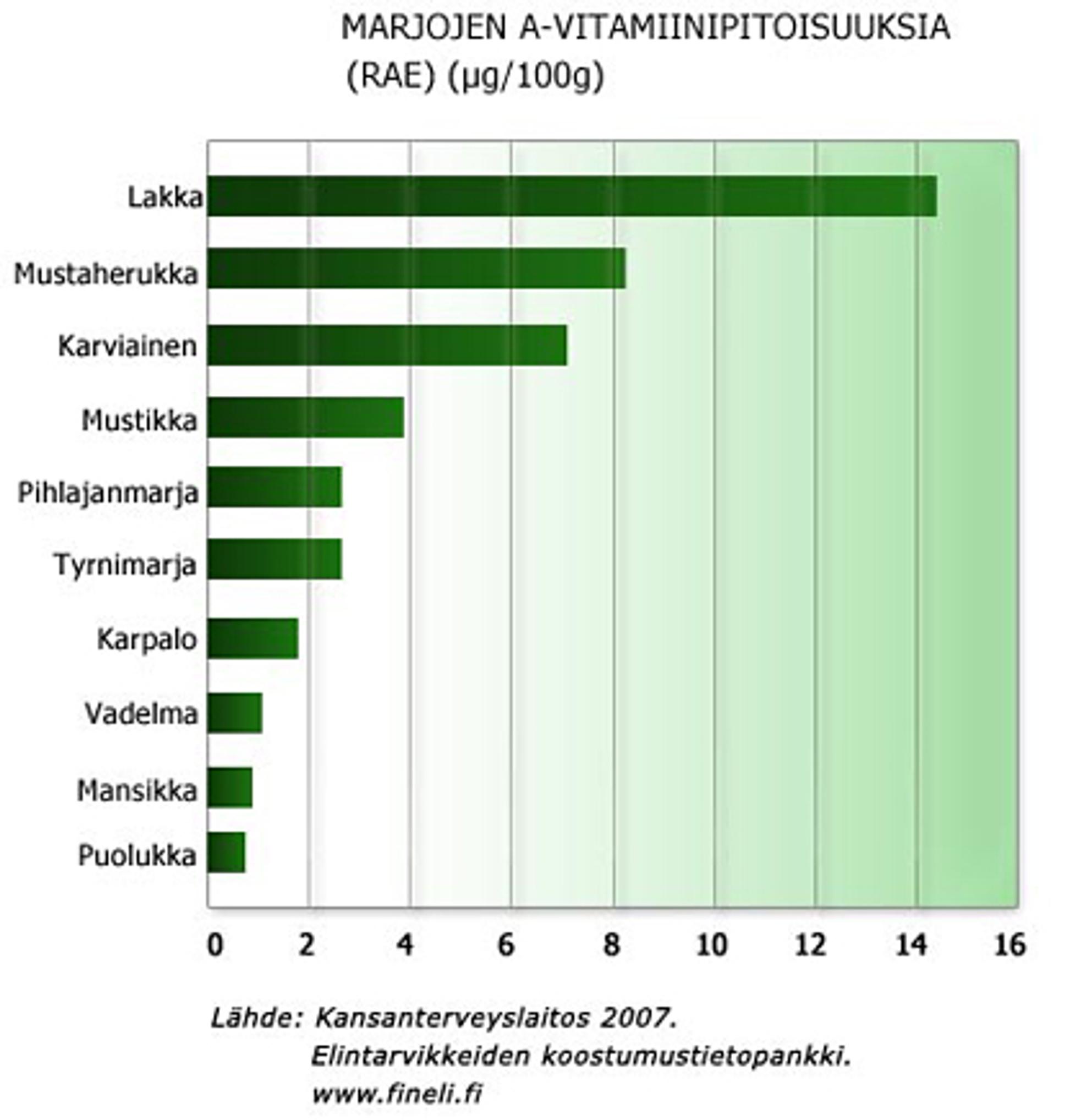 Luonnonmarjoista lakka ja tyrni sisältävät eniten rasvaliukoista E-vitamiinia, sillä niissä on eniten siemenöljyä. A-vitamiini on kasvikunnan tuotteissa esiasteena, karotenoideina, joista erityisesti beetakaroteeni on tehokas antioksidantti. Lakka on marjoista paras beetakaroteenin lähde.