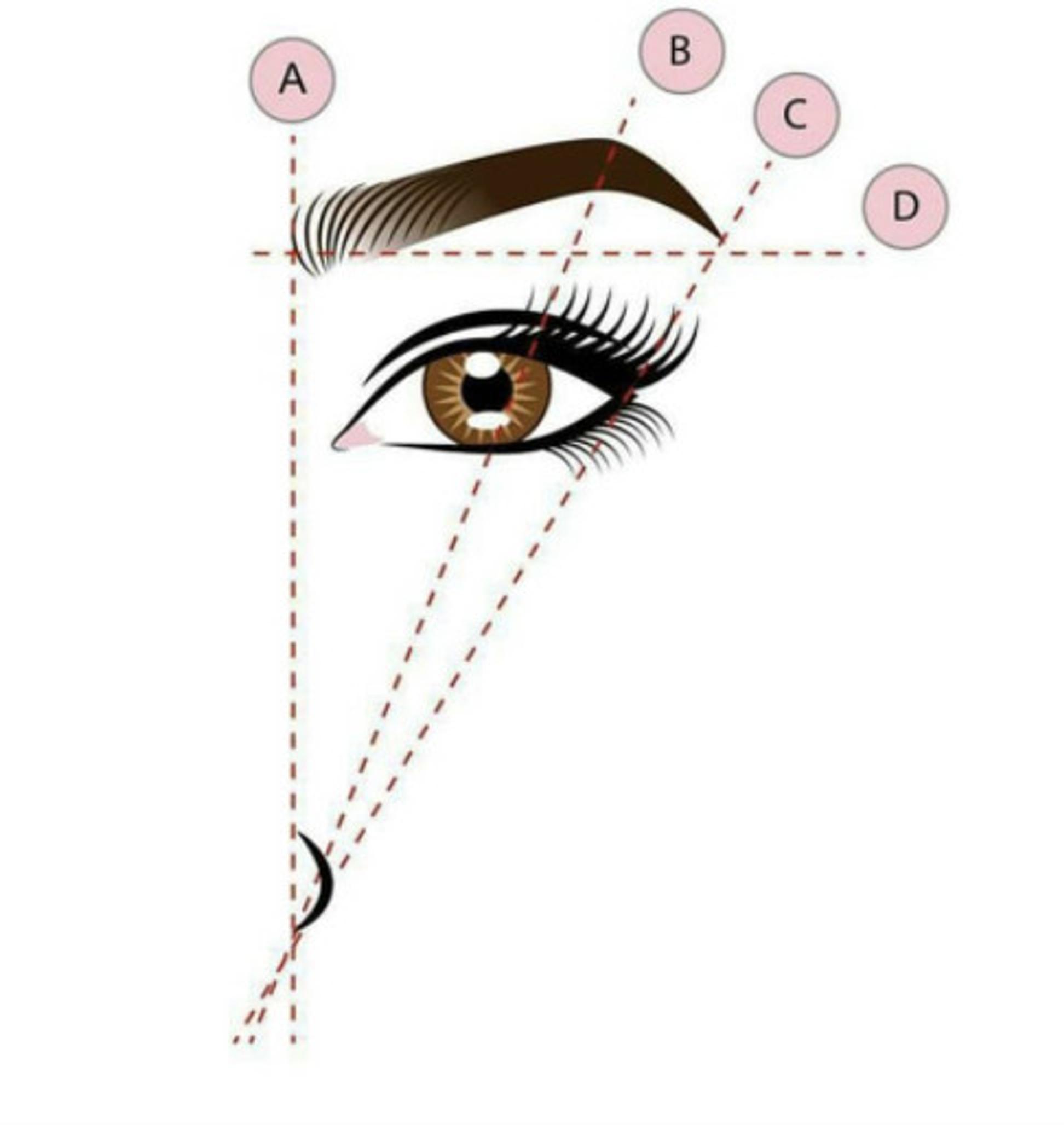 B. Sijoita nenänpieleen nojaava sivellin viistosti kulmakarvojen suuntaan siten, että linja leikkaa silmän pupillin yli. Tämän kohdan tulisi olla kulmakarvojen korkein kohta, josta kulma myös taittuu alaspäin.