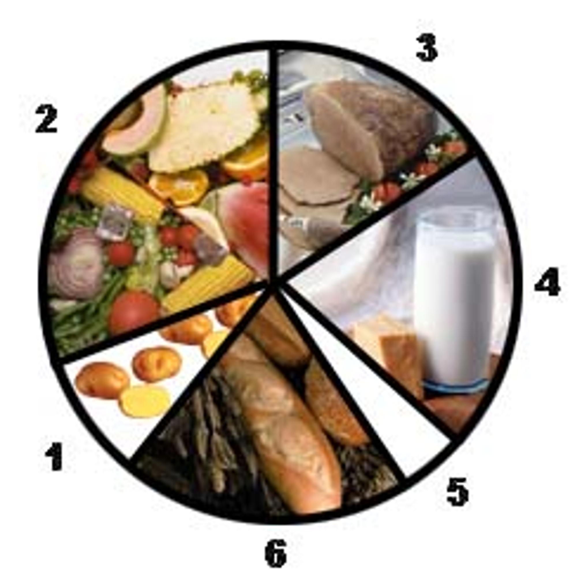 1 Peruna 2 Kasvikset sekä Marjat ja hedelmät 3 Liha ja kala 4 Maitovalmisteet 5 Rasva 6 Leipä ja viljavalmisteet