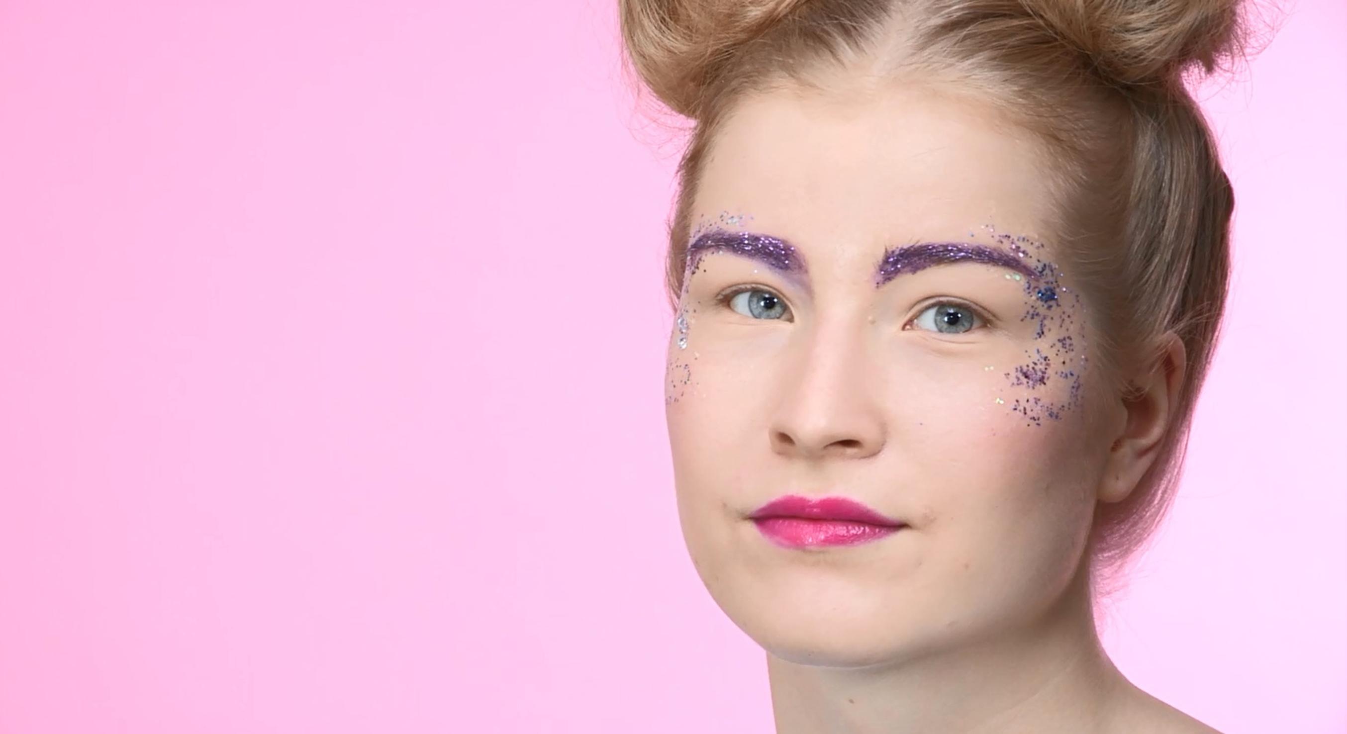 Meikkaaja Emine von Boehmin luomassa vapputyylissä yhdistyy kaksi tämän hetken hauskaa meikkilookkia: kimalle ja värikkäät kulmat.