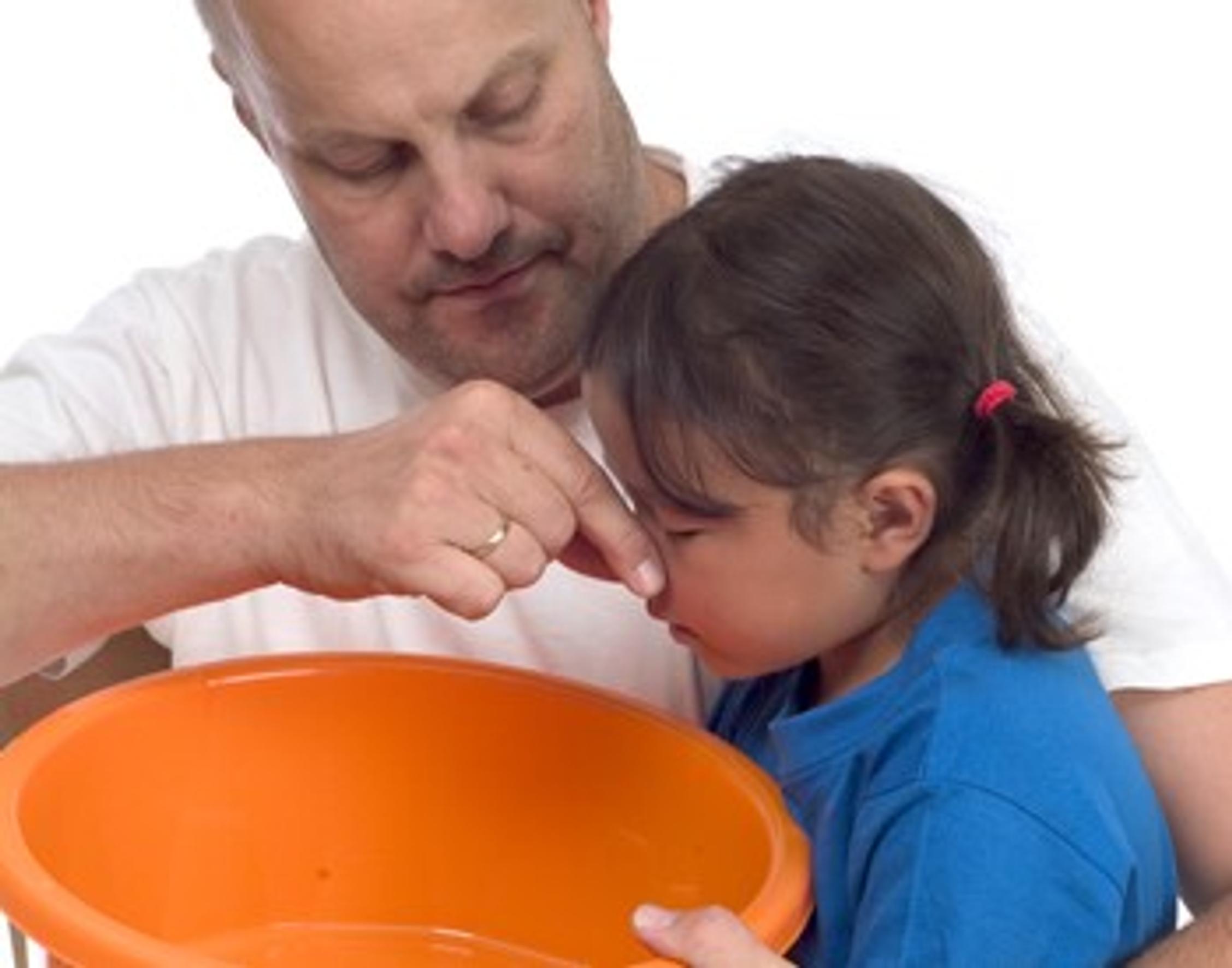 Laita lapsi istumaan hiljaa pää hiukan eteenpäin taivutettuna. Anna veren vuotaa lapsen nenästä paperinenäliinaan tai astiaan.