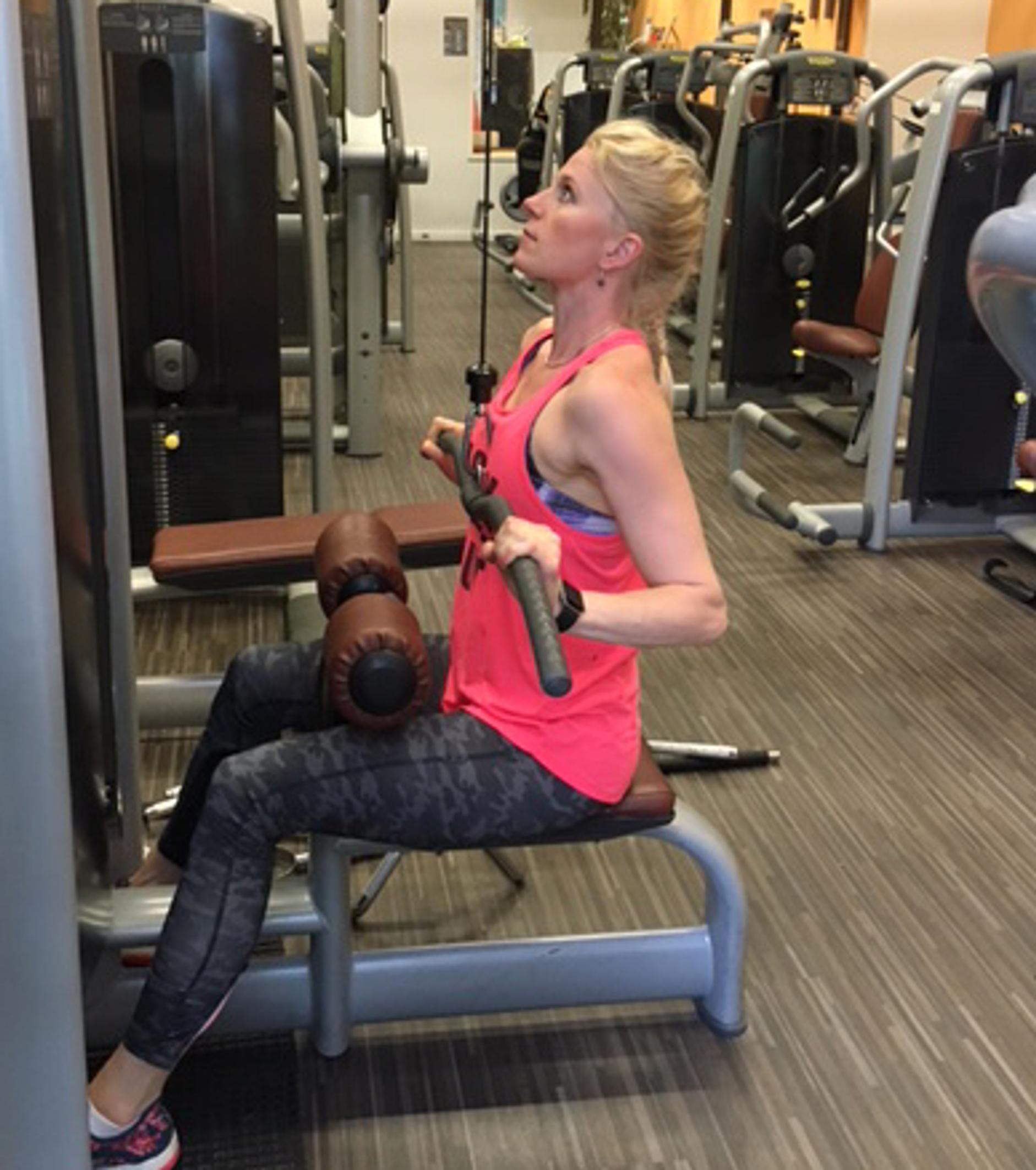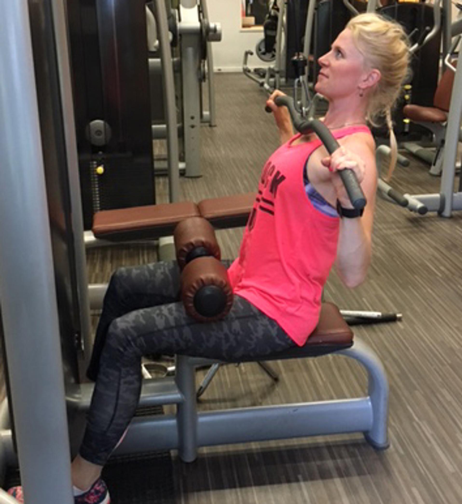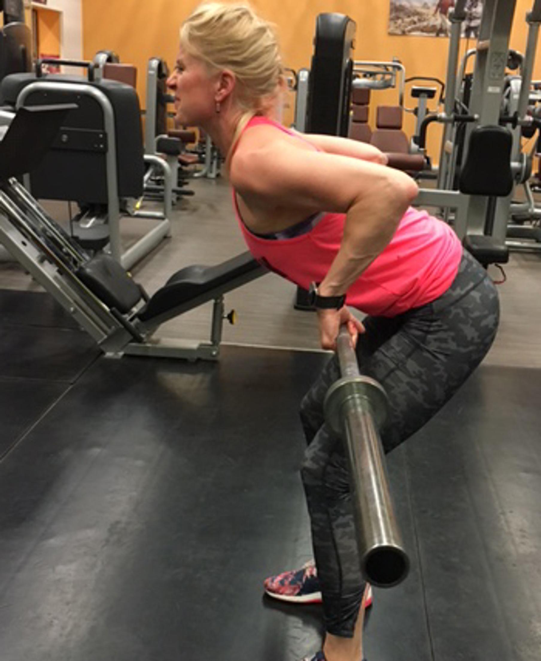 Vedät tangon rintojen alle ja olkapäät kääntyvät eteen. Leuka nousee pystyyn ja pää työntyy liikaa eteen. Usein myös rintakehä työntyy isolle kaarelle, jolloin alaselän luonnollinen notko häviää ja rintarangan alaosaan muodostuu painetta.