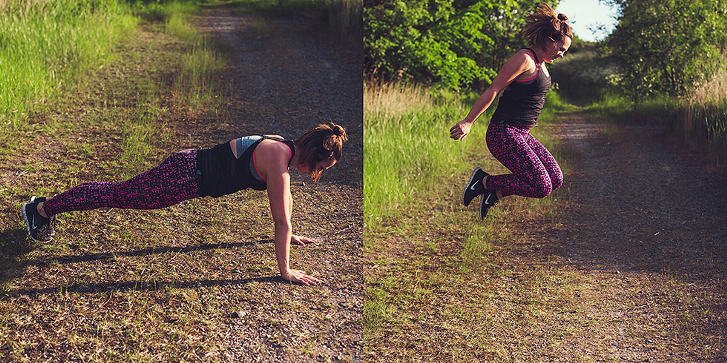 4. Tee 10 x burpee (yleisliike) ja hyppää jokaisella kerralla reippaasti ylös.
