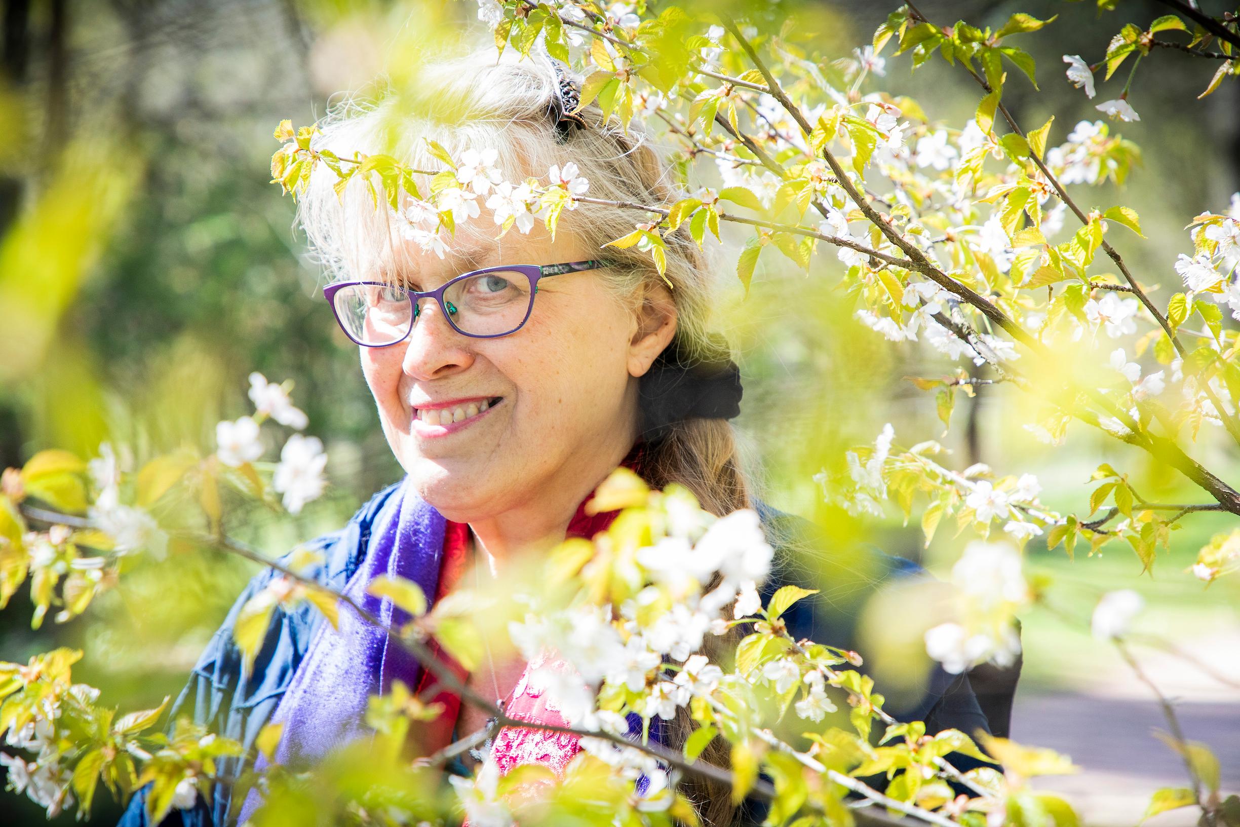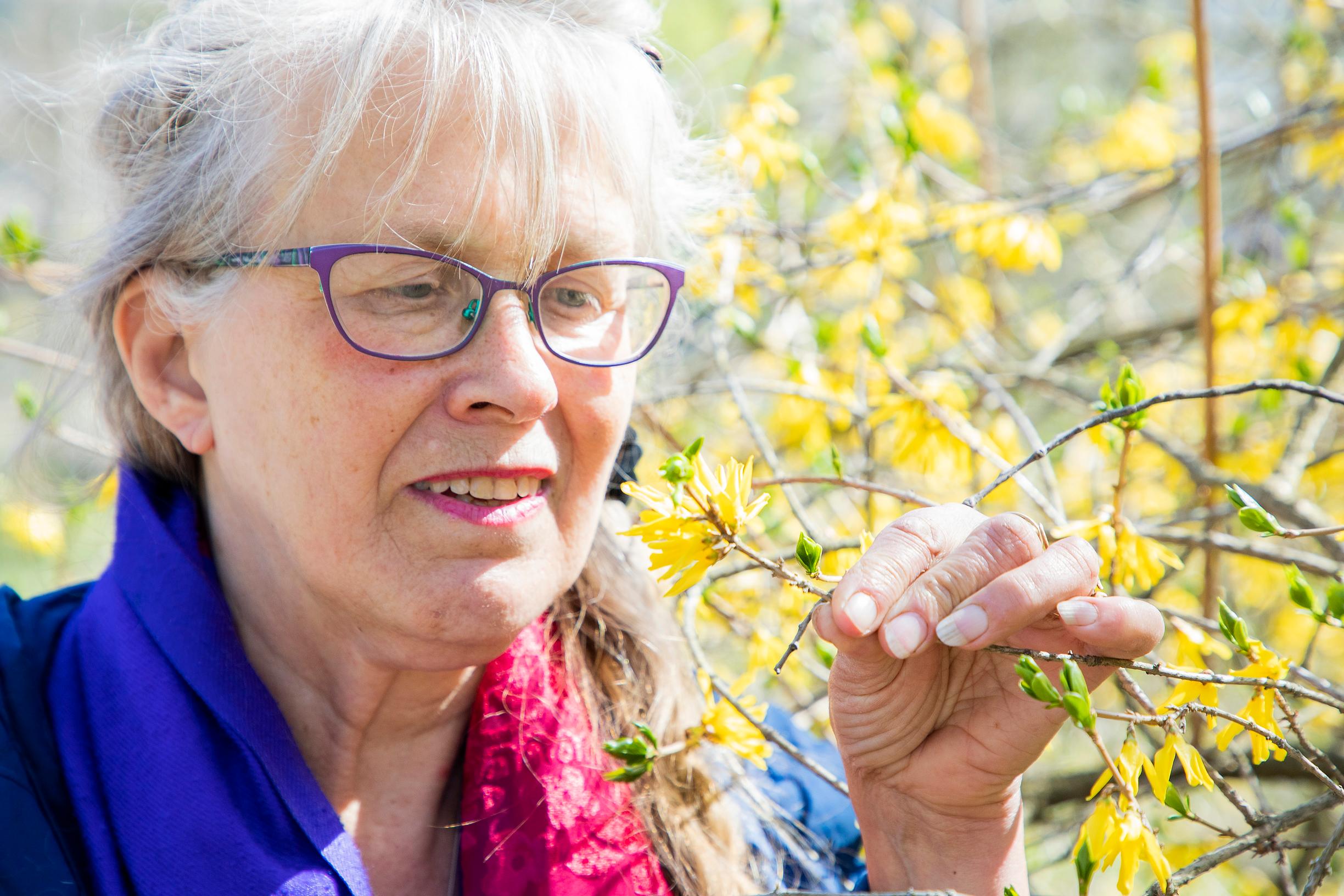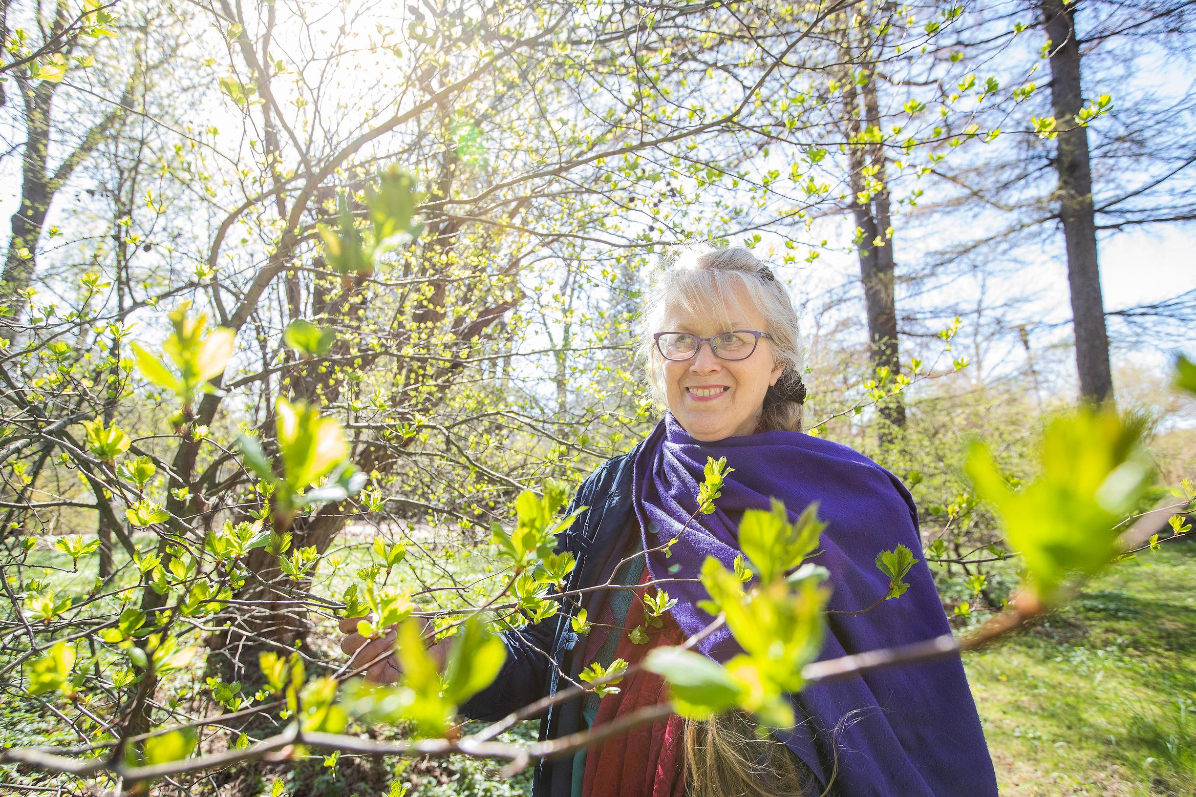 Kaisaniemen kasvitieteellinen puutarha Helsingissä kylpee kevätauringossa. Vihreä puskee esiin joka suunnasta. Tulppaanit ovat koreimmassa kukassaan. Kasvitieteilijä Sinikka Piippo kulkee värikkäät helmat hulmuten kaiken kauneuden keskellä.