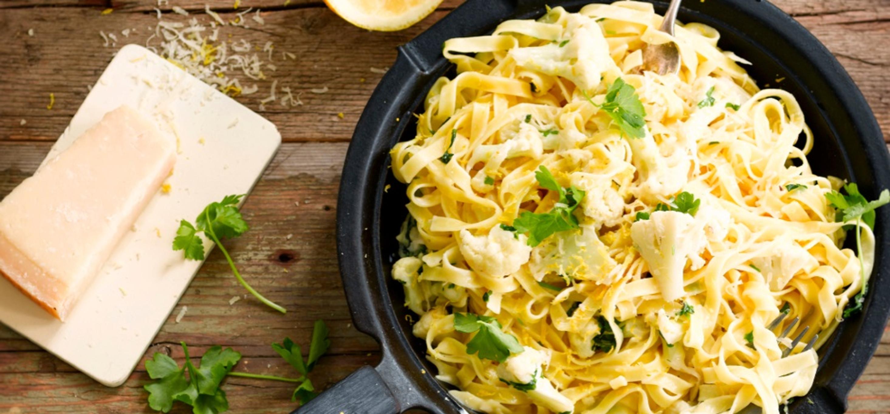Anna kukkakaalin yllättää! Se tuo pastaan pehmeää makua ja rouheaa purtavaa.