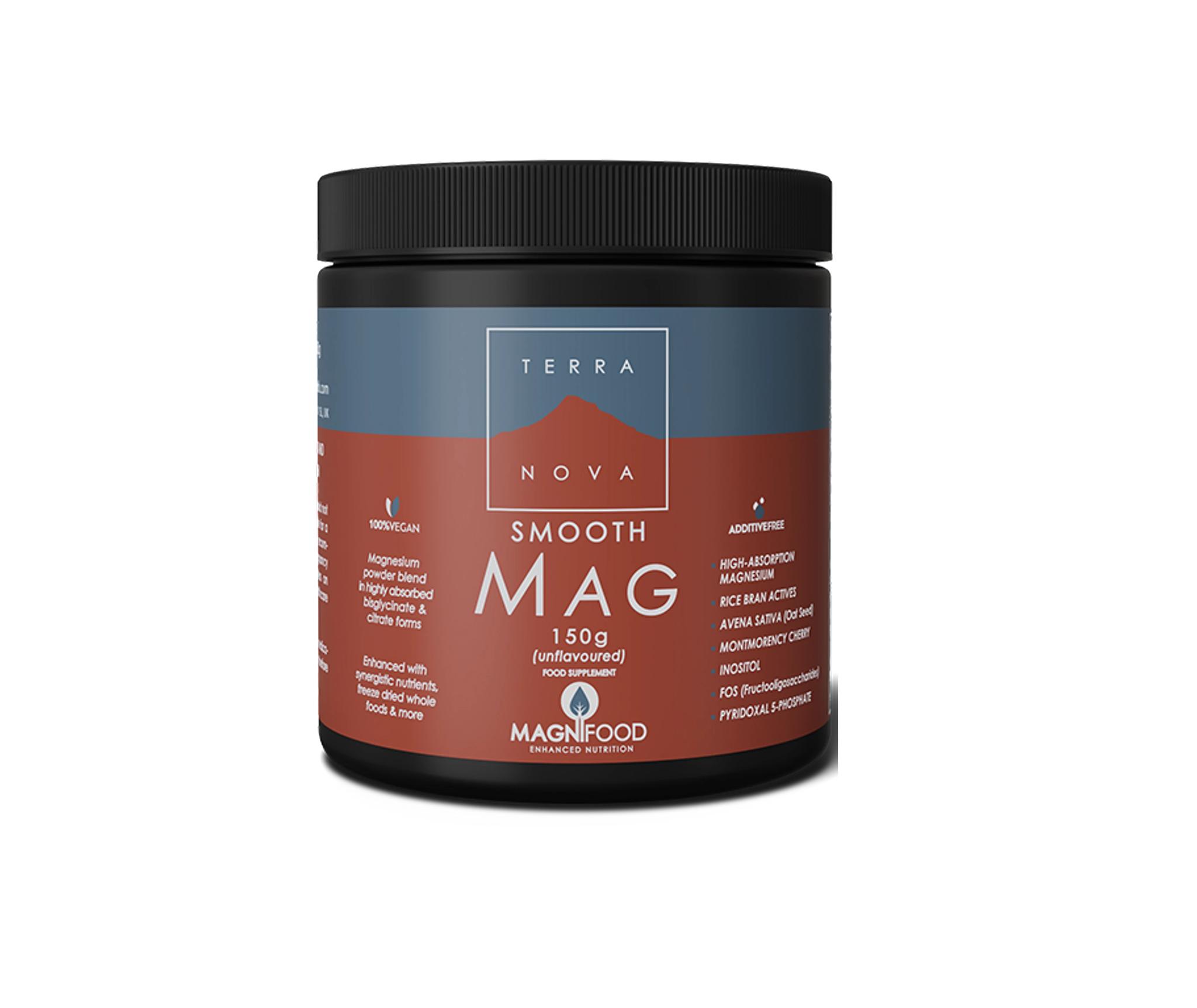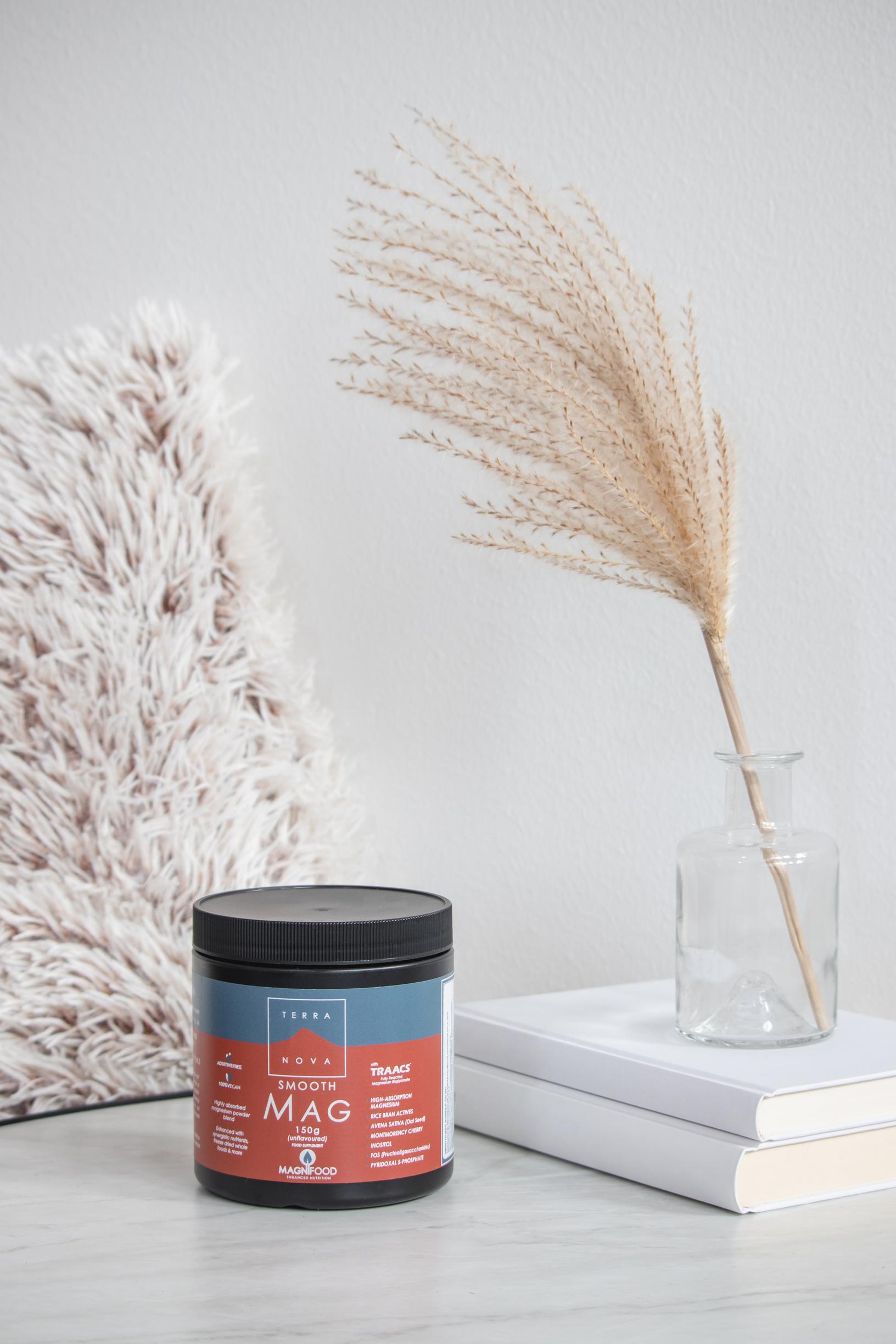 Terranovan Smooth Mag on suunniteltu tukemaan hermoston rauhoittumista ja se auttaa rentoutumaan erityisesti iltaisin tai stressijakson aikana. Jauhe ei sisällä ainoastaan magnesiumia, vaan myös luontaisesti rauhoittavia kasveja, hermostolle tärkeää B6-vitamiinia sekä magnesiumin hyödyntämistä edistävää frukto-oligosakkaridia ja inositolia.