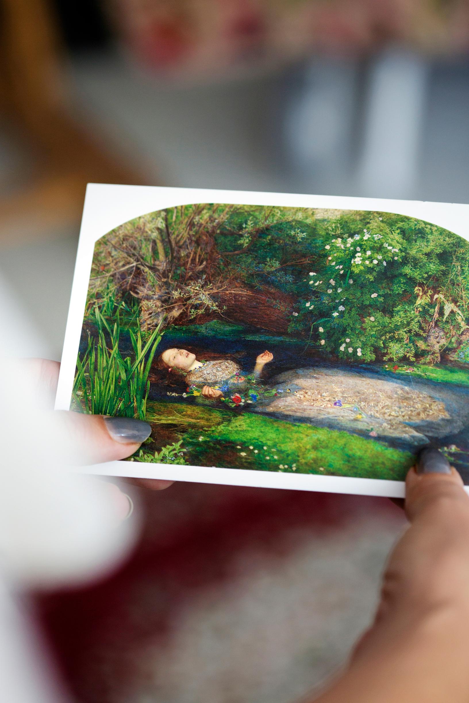 Eräänä aamuna Krista työskenteli taidehistoriaan liittyvän projektinsa kanssa. Silloin netin kuvavirrasta silmiin sattui brittiläisen 1800-luvun taiteilijan John Everett Millais’n maalaus Ofelia.