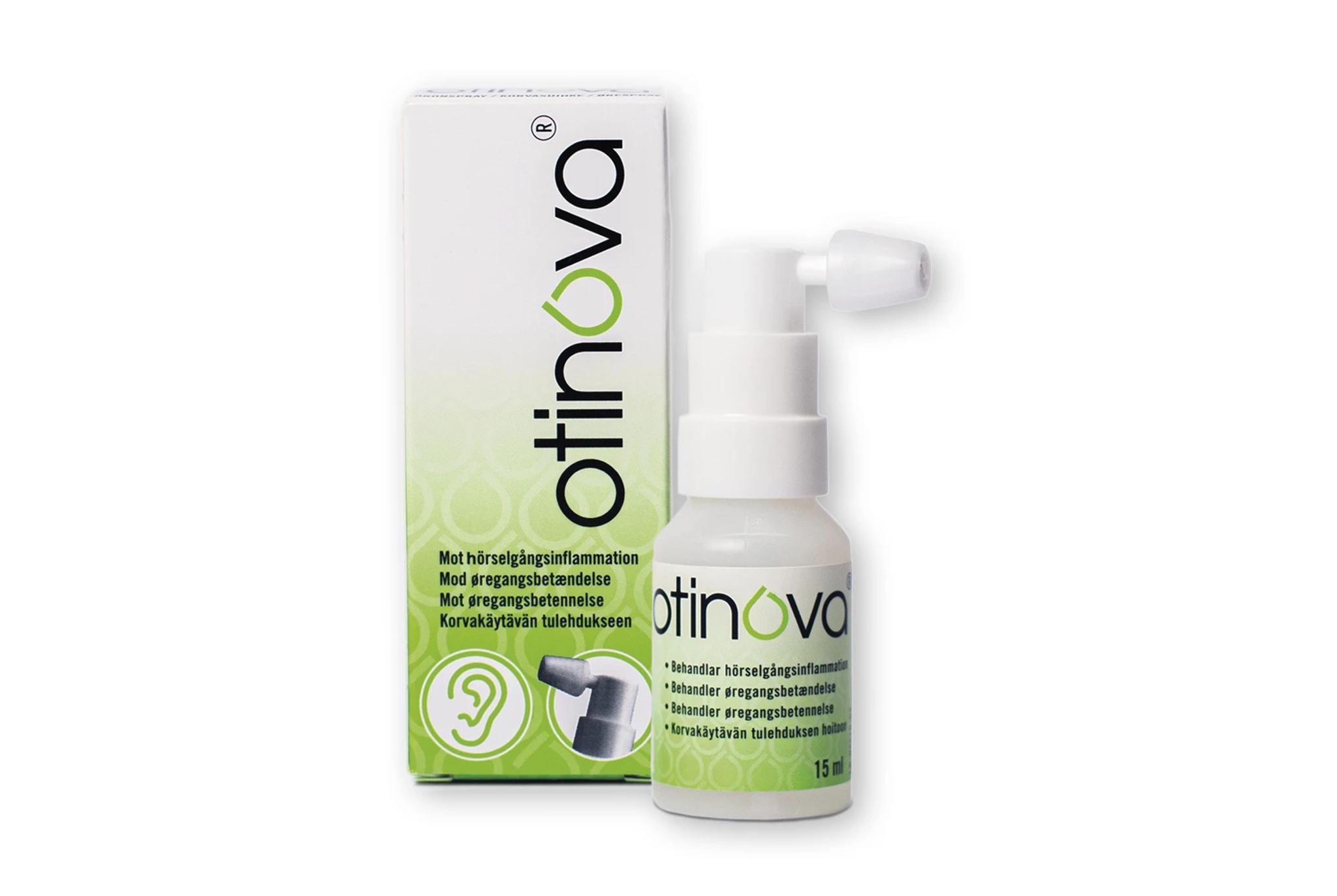 Otinova-korvasuihke on tehokas itsehoitotuote toistuviin korvakäytävän tulehduksiin. Suihketta voi käyttää heti ensimmäisten oireiden ilmaannuttua. Aikuisille ja yli 5-vuotiaille lapsille tarkoitettu suihke tehoaa sekä bakteeri- että sienitulehduksiin. Tutkimusten mukaan Otinovalla on nopea vaikutus myös antibioottiresistentteihin MRSA-bakteereihin.